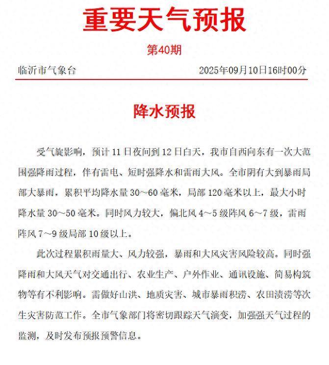 11日夜间到12日白天,阴,有大到暴雨局部大暴雨,并伴有雷电,偏东风转偏北风4~5级阵风6~7级,雷雨阵风7~9级局部10级以上,气温22~24℃;